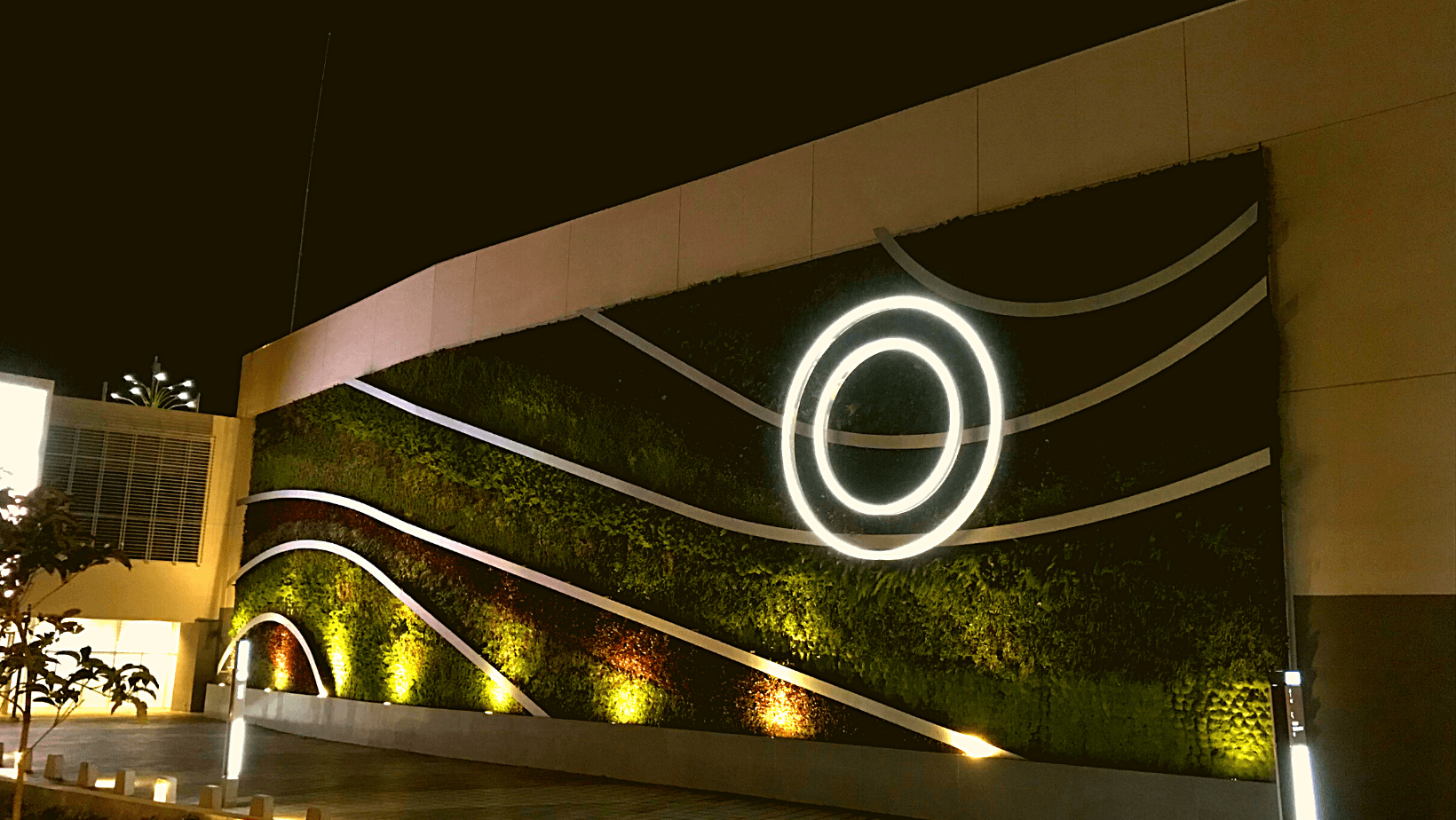 29.Iluminación artificial y natural para las plantas de un jardín vertical.